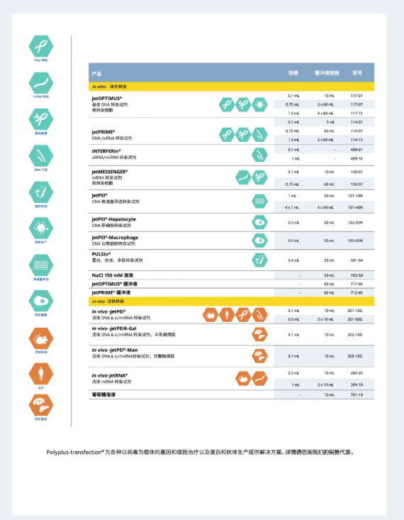 百靈克現為(wèi)polyplus transfection品牌的一級代理(lǐ)商(shāng),提供優質(zhì)的科(kē)研産(chǎn)品及針對性的技(jì )術服務(wù),全面解決實驗室遇到的各種需求。